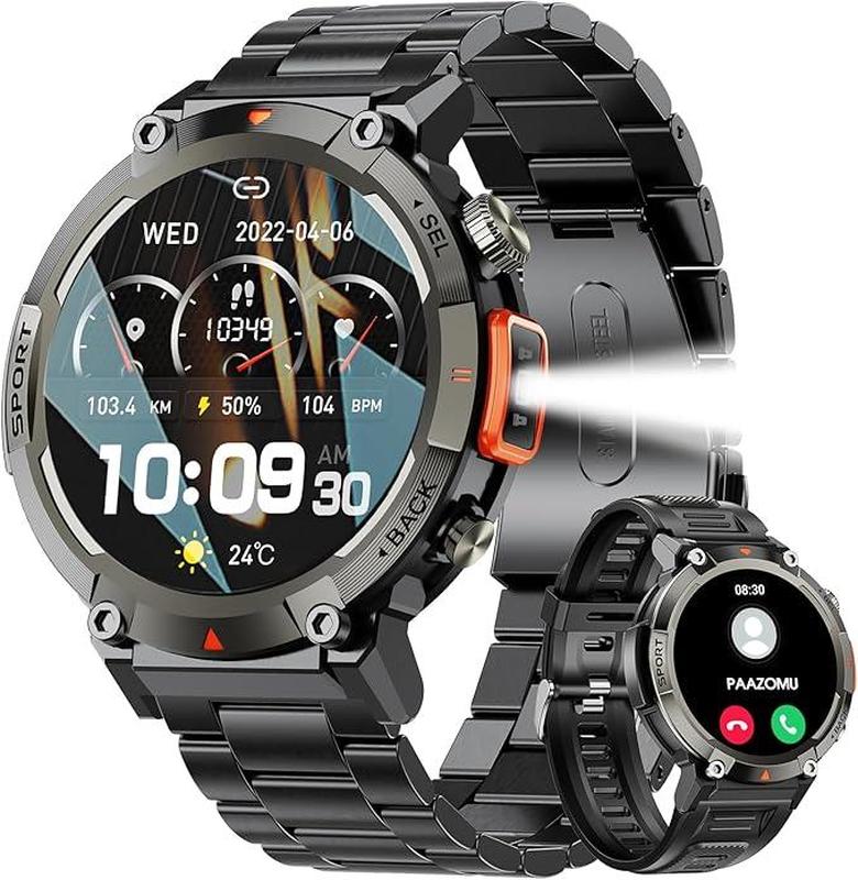Чоловічий смарт-годинник amoled 1.45" з ліхтариком, ip67, дзвінки по bluetooth, тонометр,...