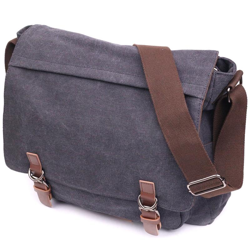 Чоловіча сумка для ноутбука з текстильним клапаном чорний vintage 21240 розмір 36х33х10 см