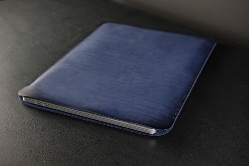 Чехол - карман из натуральной кожи для macbook (размеры есть для любой модели), цвет синий