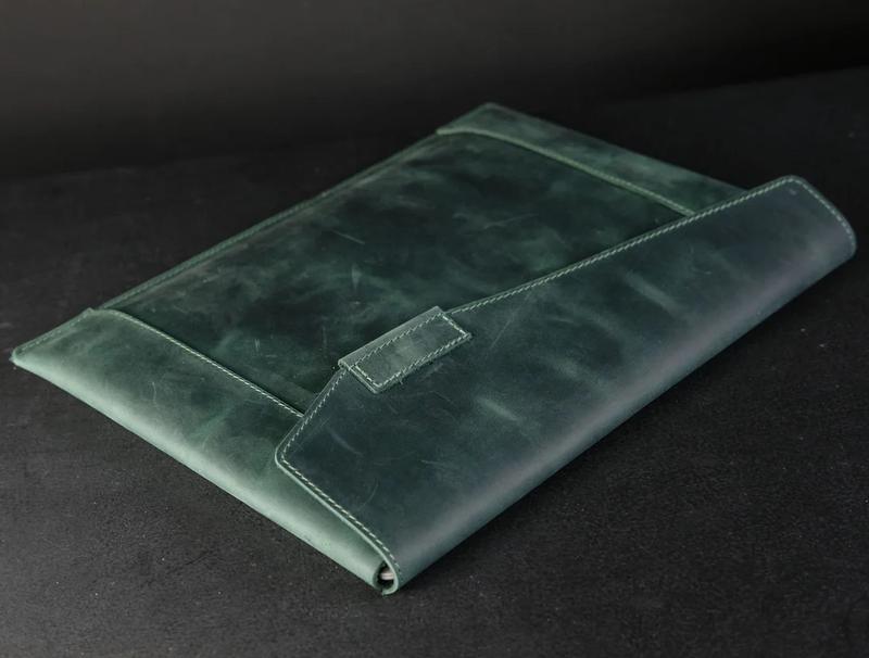 Чехол для Macbook - Толщина кожи 1,6 мм - Изготавливается индивидуально для вашей модели макбука в течение 1-2 рабочих дней - Закрывается на магнитную кнопку Чехол изготовлен из натуральной кожи "Crazy Horse" в форм-факторе - карман. Данная кожа характеризуется тем, что со временем приобретает свой уникальный внешний вид за счет естественных царапин и потертостей. Высокое качество изделия обеспечит надежную защиту вашего компьютера со всех сторон от царапин и потертостей, а также смягчит силу удара при возможном падении. Чехол максимально удобный в использовании, закрывается на магнитную кнопку. Все швы ровно прошиты зелеными нитками (под цвет чехла). Хорошее вложение в защиту внешнего вида вашего макбука на многие годы. Срок изготовления 1-5 рабочих дней. Изготовлена из натуральной (бычьей) кожи высокого качества, что обеспечивает службу годами. В нашей мастерской работают профессионалы своего дела, которые любят свою работу и вкладывают душу в изготовление каждого изделия, благодаря чему готовый аксессуар выглядит аккуратно и заставляет влюбиться с первого взгляда. Дополнительно вы можете заказать услугу гравировки (70 грн) или оттиска/вдавливания (80 грн) надписи либо изображения. Упаковка выполнена в современном крафтовом стиле. Пример: Также есть возможность выбрать данный аксессуар в другом цветовом варианте: