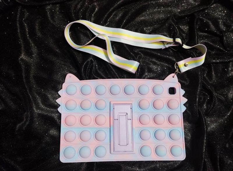 Чехол для планшета силиконовый,Поп ИТ, очень красивый,с подставкой и ремешком.Брали на Планшет Huawei MediaPad T3 10,но оказался большой.Замеры 25см×16,5см.Пересылаю.