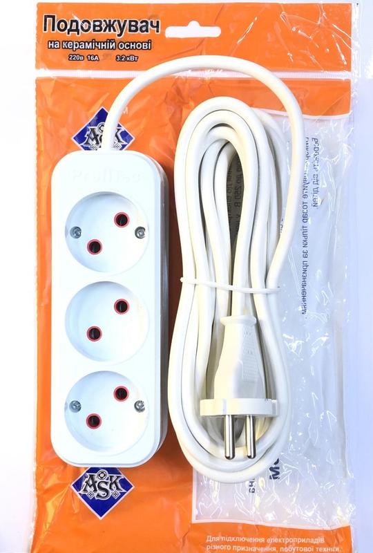 Подовжувач ASK-5м на кераміч. основі/3 гнізда, 220, 16 А, 3,2 кВт ProfiTec 220B 16A 3.2 кВт (60)