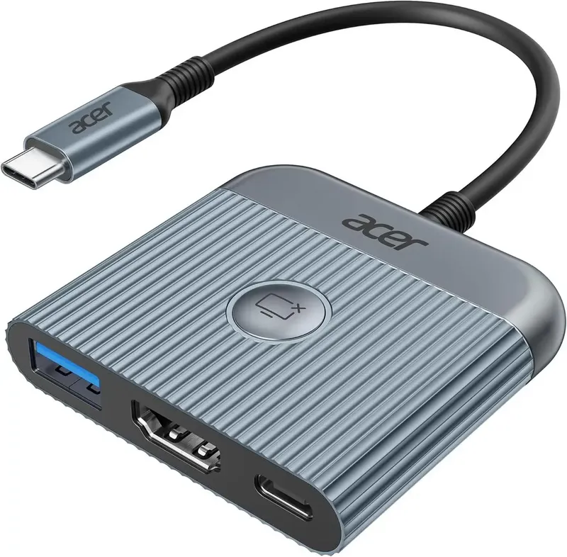 Адаптер acer usb c — hdmi, адаптер 4k@60 гц hdmi — type з потужністю живлення 100 вт, порт...