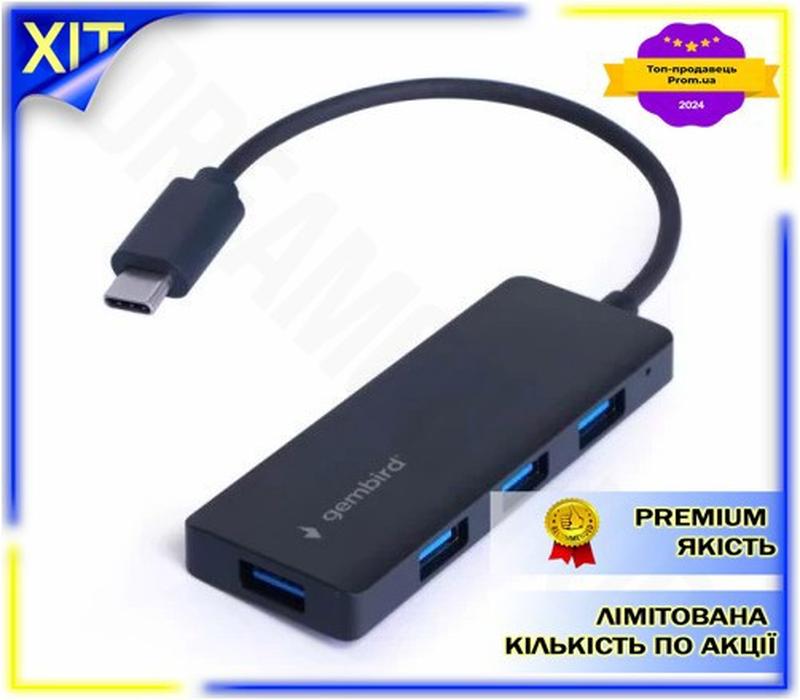 Dm хаб usb gembird специфікація 2.2 4xusb 3.1 type-c 15 см чорний концентратор для підключ...