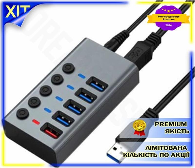 Dm хаб usb dynamode специфікація 2.2 5xusb 3.0 сірий з блоком живлення для комп'ютера usb...