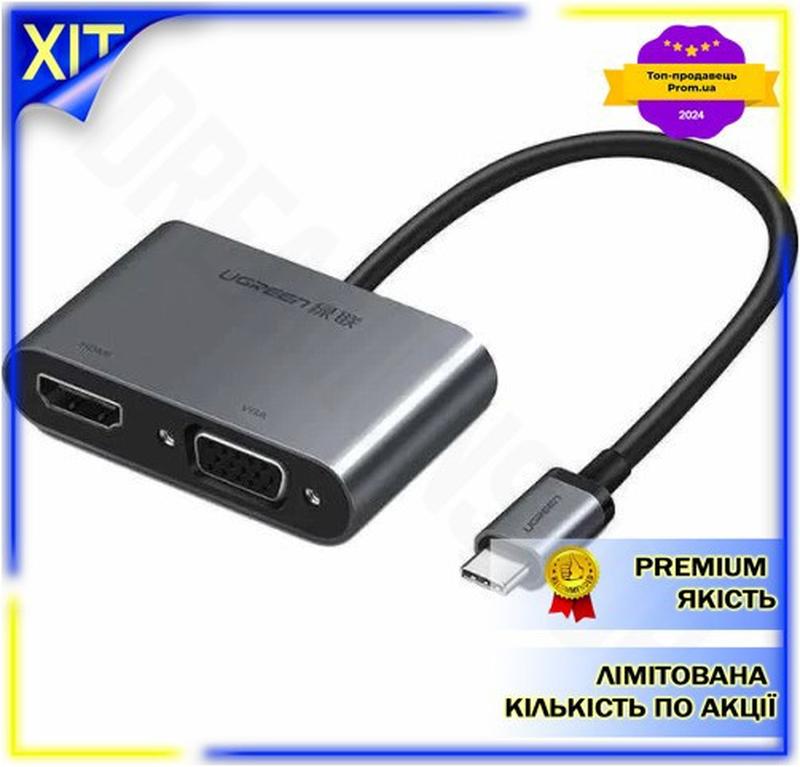 Dm хаб usb ugreen специфікація 2.2 type-c 3.1 чорний 1xtype-c 100вт 1xusb 3.0 hdmi 4k vga...