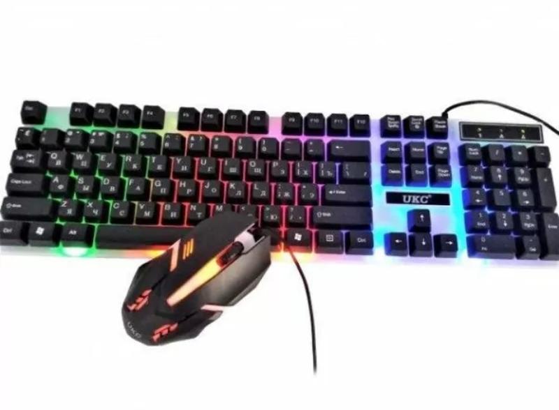 Комп'ютерна клавіатура і мишка UKC M416 ART-5559 Combo Gamer UKC ART-5559 - це ігрова клавіатура, яка володіє всім необхідним набором функцій. Великі клавіші забезпечують відмінну зворотну віддачу і прекрасні тактильні відчуття під час роботи. Мишка з LED RGB переливається підсвічуванням. Клавіатура має англійську та російську розкладки. Підсвічування включається кнопкою "Scroll Lock". Хід клавіш м'який, а підсвічування додає більше приємних емоцій в процесі гри. Комп'ютерна клавіатура, характеристики: Матеріал: Метал / ABS-пластик; Розмір: 437 x 127 x 40 мм; Вага: 530 р. Характеристики: LED Світлодіодне підсвічування; Режим світіння: 1 (Статична. Включається "Scroll Lock"); Кількість клавіш: 104; Тип підключення: USB; Розкладка: RU/EN; Працює з усіма ОС; Кількість клавіш миші: 3 (ЛКМ/ПКМ/Скролл); Довжина кабелю живлення: 1,5 м; Колір: Чорний з білим. (Бекплейт білий) Комп'ютерна клавіатура, комплектація: Клавіатура; Мишка; Упаковка. є НАЛОЖЕНИЙ ПЛАТІЖ