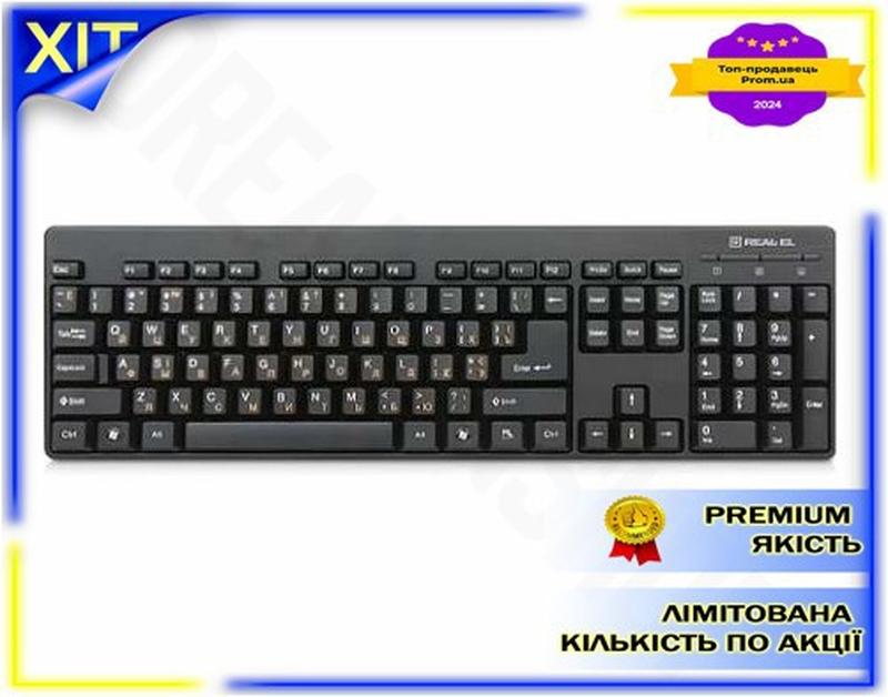Dm клавіатура real-el мембранна специфікація 2.2 чорна usb повнорозмірна для комп'ютера оф...