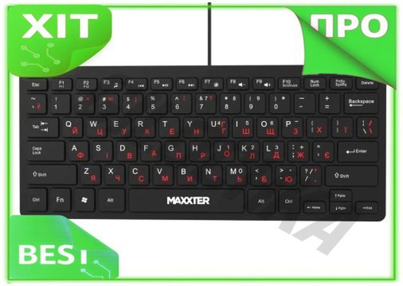 Ve клавіатура maxxter usb мембранна new version чорна компактна 78 клавіш для комп'ютера д...