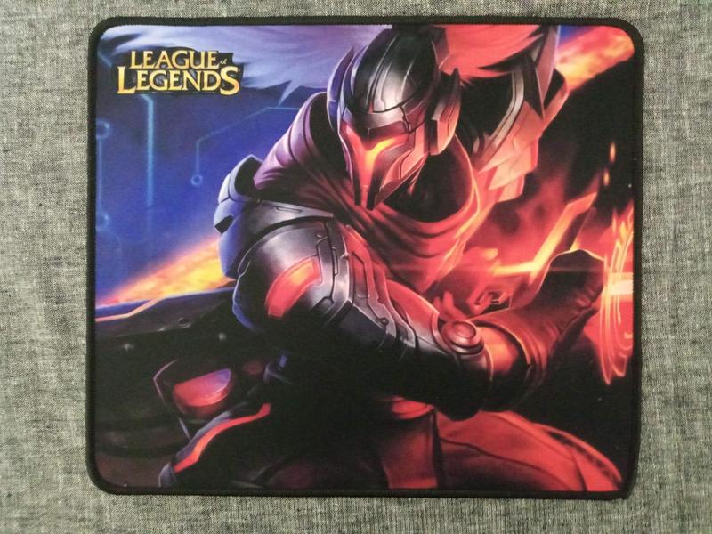 Килимок для мишки League of Legends 25x29см Прошитий по краях периметром, прогумований низ -- зменшує ковзання по столу, верх -- тканинна основа з малюнком. тип поверхні -- speed