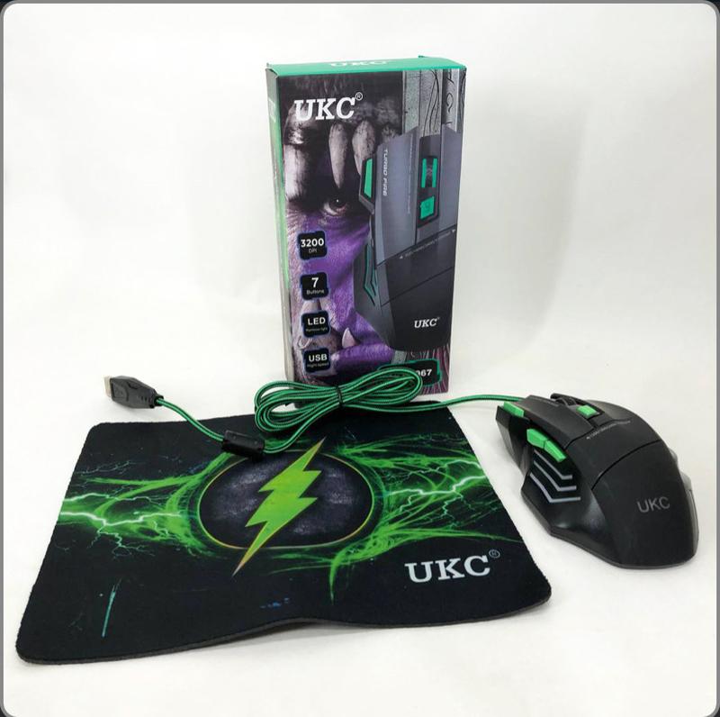 Мишка провідна ігрова UKC X7S 7D виготовлена із прогумованого пластику. Симетрична, зручна, точна та швидка. Виконана в класичному дизайні. Кнопки комп’ютерної USB мишки відмінно зорієнтовані, їхня активна зона досить велика, тому для натискання не потрібно цілитися пальцями. Дії кнопок і прокручування коліщатка скролла супроводжуються виразним клацанням. Колесо прокрутки прогумоване, добре прокручується. Над ним розташована кнопка перемикання чутливості оптичної миші, яку можна змінити безпосередньо у грі. У комплектацію входить килимок для мишки.