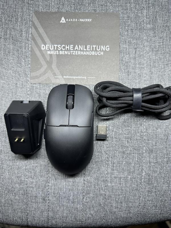 Нова мишка ajazz 159p ms Black Дуже приємна в користуванні, хороший сенсор, легка 59г. Комплект: Мишка, зарядна станція, провод, інстуркція