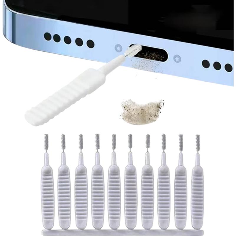 Міні-щітки для чищення зарядного порту та навушників (набір 10 шт.) Ефективні міні-щітки призначені для чищення важкодоступних місць -- портів зарядки, роз'ємів навушників, сіточек динаміків та інших дрібних елементів. Гнучка форма дозволяє проникати у глибокі отвори, не ушкоджуючи обладнання. М'які нейлонові ворсинки легко видаляють пил, бруд та дрібне сміття. Щітки підходять для регулярного догляду за смартфонами, планшетами, навушниками та побутовою технікою. Набір складається з 10 щіток довжиною 6 см і діаметром 0,65 см. Ергономічна ручка забезпечує зручність використання. Ідеальні для дбайливого чищення електроніки вдома, в офісі та в дорозі.