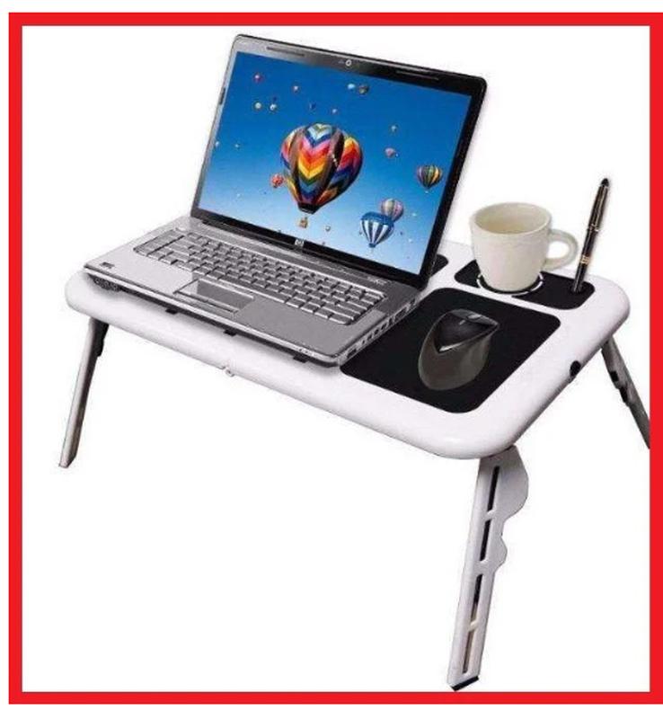 Оригінальний, комфортний і багатофункціональний столик, його можна використовувати як підставку для книги, підставку для ноутбука, піднести сніданок у ліжко, а під час подорожей і відряджень він взагалі необхідний, як робочий столик. Переваги столика: Монітор розташований досить високо, під час тривалої роботи не затікає шия. Легко працювати з клавіатурою. Немає проблем із вентиляцією комп'ютера, оскільки в ньому вбудовані 2 вентилятори, які працюють від ноутбука через USB-вхід. Також продумана нерегульована підставка під мишку, що дуже зручно — мишка розміщена в горизонтальному положенні. У складеному вигляді столик дуже компактний, легко можна знайти місце для його зберігання. Особливості: Стіл виготовлений із пластику з платформою для мишки Ніжки стола виготовлені з пластику з металевим ядром Постачається з двома USB- вентиляторами й одним універсальним USB-кабелем, може використовуватися як кулер Ви можете використовувати USB кабель для вставки будь-якого USB порту, вентилятор може працювати Широке застосування: може використовуватися не тільки як охолодження, але також як портативний стіл, стіл для читання або малювання вдома та в школі, в офісі та в машині, також у дорозі час подорожей. Легко розкладається, буквально за кілька секунд Супертонкий (товщина всього 36 мм) Дуже легкий, не гнутий і міцний, максимальне навантаження 25 кг Розкладається на столі, на підлозі, у ліжку, на дивані або на ногах, легко використовувати ідеально підходить для ноутбуків із розміром екрана 14,1''' і нижче, однак цілком поміщається 17" ноутбук Розмір столу в складеному вигляді: 278 х 316 х 36 мм Розмір стола в розкладеному вигляді: 556 х 316 х 18 Максимальна висота ніжок: 27 см Докладніше: https://opttyt.*********************************************