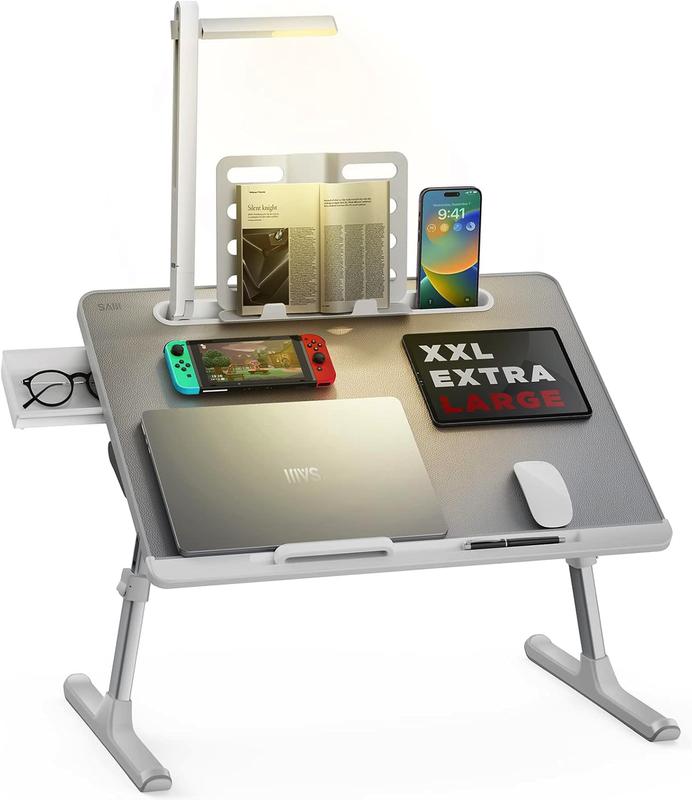 Столик для ноутбука VHG K8 Gray 21”, з органайзером та LED лампою, 600 x 450 мм VHG K8 Gray – це сучасний багатофункціональний столик, який забезпечує комфортну роботу вдома, в офісі або під час відпочинку. Оснащений знімною акумуляторною LED-лампою з трьома рівнями яскравості, він ідеально підходить для роботи, навчання, читання або творчості. Велика робоча поверхня (60 x 45 см) дозволяє зручно розмістити ноутбук до 21”, мишу, книги або планшет. Знімна підставка забезпечує зручне розміщення книги або гаджета для читання. Ліворуч розташована вбудована шухлядка-органайзер, що дозволяє зберігати канцелярію, окуляри, навушники чи інші дрібні аксесуари. Регульований кут нахилу (0°-36°) та висота (24-32 см, 5 рівнів) дають змогу налаштувати столик відповідно до ваших потреб, зменшуючи навантаження на шию, спину та очі. Складні алюмінієві ніжки з протиковзкими накладками забезпечують максимальну стабільність. Завдяки компактній складній конструкції столик легко зберігати та транспортувати. * * * ✅ Основні характеристики: • Бренд: VHG • Модель: K8 Gray • Матеріал: МДФ, алюмінієвий сплав, ABS-пластик, силікон • Колір: Сірий • Розмір робочої поверхні: 600 x 450 x 20 мм • Регулювання висоти: 240-320 мм (5 рівнів) • Регулювання кута нахилу: 0-36° (4 рівні) • LED-лампа: знімна, акумуляторна, 4000K, 3 рівні яскравості, автономна робота до 10 годин • Сумісність: ноутбуки до 21” • Максимальне навантаження: 40 кг • Вага: 3,5 кг * * * ✅ Особливості товару: ❇️ Ергономічний дизайн – регульована висота та кут нахилу для зручної роботи ❇️ Велика робоча поверхня – ідеальна для ноутбука, миші, книг та аксесуарів ❇️ Знімна LED-лампа – автономна, можна використовувати окремо ❇️ Вбудований органайзер-шухлядка – для зберігання дрібниць та канцелярії ❇️ Знімна підставка для книг або планшета – зручне розміщення гаджетів ❇️ Слот для телефону або планшета – безпечне кріплення під час роботи ❇️ Стійкі алюмінієві ніжки з протиковзкими накладками – стабільність на будь- яких поверхнях ❇️ Компактна складна конструкція – легко зберігати і переносити * * * ✅ Комплектація: • 1 х столик VHG K8 Gray • 1 х знімна LED-лампа • 1 х кабель зарядки USB Type-C • 1 х інструкція • 1 х заводське пакування * * * Столик VHG K8 Gray – ідеальний вибір для тих, хто шукає функціональний, стильний і зручний аксесуар для роботи та навчання.