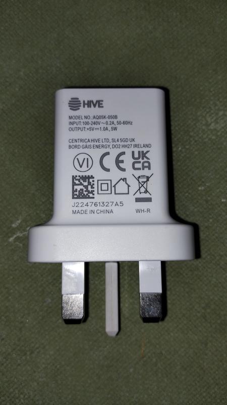 Мережевий адаптер Hive для USB-кабелю з вилкою для Великобританії.