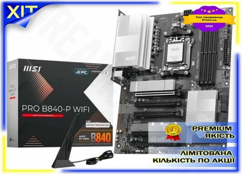 ## DM Материнська плата AM5 специфікація 2.2 MSI PRO B840-P WIFI 4xDDR5 для ПК з WiFi 7 та Bluetooth 5.4 SPE|LZ Неперевершена продуктивність З огляду на стрімкі технологічні зміни, MSI завжди слідує останнім тенденціям і надає клієнтам передові функції та новітні технології. Материнські плати MSI оснащені модернізованим рішенням щодо харчування, новітніми стандартами зберігання даних та відмінними можливостями підключення, що забезпечує оптимальну продуктивність для ігор. Видатний тепловий дизайн Неперевершена продуктивність материнських плат MSI гарантується інноваційним та оптимізованим тепловим дизайном, що забезпечує найкращу стабільність процесора, набору мікросхем, твердотілових накопичувачів та низькі температури при повній додатків та продуктивності в іграх. Підключення Материнські плати MSI забезпечують неперевершені можливості підключення завдяки блискавичній швидкості передачі даних через мережу нового покоління, сховище та підключення Wi-Fi. Персоналізація Материнські плати MSI поставляються в комплекті з декількома корисними та інтуїтивно зрозумілими програмами, Назва Од.Вим. Значення Тип пам'ятіDDR5 M.2 порт2 Форм-факторATX Bluetoothє Роз'єми SATA34 Порти USB 2.08 VGAнемає Кількість PCI-E x16 4.01 Кількість PCI-E x16 3.04 Порти USB 3.27 HDMI1 АудіоALC897 DisplayPortнемає DVIнемає Кількість слотів пам'яті4 СокетAM5 Порти USB Type-C1 Wi-FiWi-Fi 7 (802.11be) Інтегрований процесорнемає ЧипсетAMD B840 Не проґавте можливість, кількість акційних пропозицій обмежена! Будьте пильнi! На ринку з’явилося багато пiдробок низької якості, якi видають за opигiнaл! Ми гарантуємо найвищу якicть нашої продукції в Україні, яка бездоганно виконує свої функцiї та дарує вам лише позитивнi емоції. Чому покупці обирають нас? Рекомендації та позитивнi вiдгуки вiд реальних покупцiв Наш інтернет-магазин пишається численними схвальними вiдгуками вiд задоволених клієнтів. Перегляньте їхнi думки та рекомендацii безпосередньо тут або на нашому сайті, щоб переконатися у правильностi вашого вибору. Відкритість та поряднicть Ми будуємо відносини з клієнтами на основі чесності та відкритості, завжди готові йти назустріч. Всі деталi про товари, гарантii та умови обміну чітко прописані на сайті, що забезпечує довipу та взаєморозуміння. Зручне повернення без зайвих клопотів Ми розуміємо, що іноді трапляється, що річ не пiдiйшла. Тому наша система повернення проста та зрозуміла, щоб ви почували себе впевнено та спокійно пiсля покупки. Висококласний сервіс, 10 рокiв досвiду Наші фахівці завжди готові надати професійну консультацію та допомогти з вибором. Ми цiнуємо кожного клієнта та прагнемо зробити ваш досвід покупок максимально приємним та зручним. Оперативна доставка та рiзнi варiанти оплати Ми забезпечуємо швидку доставку по всій країні, а також пропонуємо широкий спектр способів оплати, включаючи онлайн-платежі та оплату при отриманні. Обирайте опцію, яка вам найзручніша. ✅ Кожен товар проходить ретельну перевiрку перед вiдправкою ✅ Відгуки наших вдячних клієнтів Поспішайте, залишилося лише 3 акцiйних товари! ✅ З повагою до кожного покупця ✅