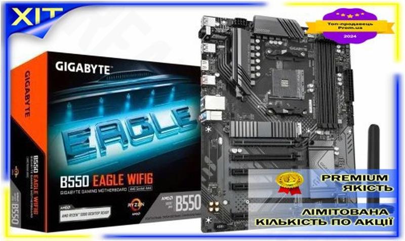 ## DM Материнська плата AM4 специфікація 2.2 Gigabyte B550 EAGLE WIFI6 ATX для AMD 4xDDR4 Wi-Fi 6 Bluetoo SPE|LZ Gigabyte B550 EAGLE WIFI6 -- материнська плата формфактора ATX, призначена для встановлення процесорів AMD, які сумісні із сокетом B550. Підтримує оперативну пам'ять DDR4, для планок передбачено 4 слоти з можливістю встановлення до 128 ГБ. Має всі необхідні роз'єми для встановлення накопичувачів швидкісного типу, відеопорти для підключення мультимедійних пристроїв. Для надійного та швидкого з'єднання материнська плата передбачає підтримку Wi- Fi 6, що забезпечує швидкий обмін даними, безперебійну потокову передачу та значні переваги у сфері віртуальної реальності завдяки високій пропускній здатності та низькій затримці. Рішення GbE LAN забезпечує неймовірно високу швидкість передачі даних, щоб гарантувати стабільне середовище передачі даних, коли система виконує хмарні обчислення або надає зовнішні обчислювальні послуги. Наявні якісні аудіоконденсатори допомагають забезпечити високу роздільну здатність і точність звуку, щоб ви отримали найбільш реалістичні звукові ефекти Назва Од.Вим. Значення Тип пам'ятіDDR4 M.2 порт2 Форм-факторATX Bluetoothє Роз'єми SATA34 Порти USB 2.08 VGAнемає Кількість PCI-E x16 4.01 Кількість PCI-E x16 3.04 СокетAM4 ЧипсетAMD B550 HDMI1 Wi-FiWi-Fi 6 (802.11ax) Порти USB 3.26 DisplayPortнемає DVIнемає Кількість слотів пам'яті4 Порти USB Type-C1 Інтегрований процесорнемає Не проґавте можливість, кількість акційних пропозицій обмежена! Будьте пильнi! На ринку з’явилося багато пiдробок низької якості, якi видають за opигiнaл! Ми гарантуємо найвищу якicть нашої продукції в Україні, яка бездоганно виконує свої функцiї та дарує вам лише позитивнi емоції. Чому покупці обирають нас? Рекомендації та позитивнi вiдгуки вiд реальних покупцiв Наш інтернет-магазин пишається численними схвальними вiдгуками вiд задоволених клієнтів. Перегляньте їхнi думки та рекомендацii безпосередньо тут або на нашому сайті, щоб переконатися у правильностi вашого вибору. Відкритість та поряднicть Ми будуємо відносини з клієнтами на основі чесності та відкритості, завжди готові йти назустріч. Всі деталi про товари, гарантii та умови обміну чітко прописані на сайті, що забезпечує довipу та взаєморозуміння. Зручне повернення без зайвих клопотів Ми розуміємо, що іноді трапляється, що річ не пiдiйшла. Тому наша система повернення проста та зрозуміла, щоб ви почували себе впевнено та спокійно пiсля покупки. Висококласний сервіс, 10 рокiв досвiду Наші фахівці завжди готові надати професійну консультацію та допомогти з вибором. Ми цiнуємо кожного клієнта та прагнемо зробити ваш досвід покупок максимально приємним та зручним. Оперативна доставка та рiзнi варiанти оплати Ми забезпечуємо швидку доставку по всій країні, а також пропонуємо широкий спектр способів оплати, включаючи онлайн-платежі та оплату при отриманні. Обирайте опцію, яка вам найзручніша. ✅ Кожен товар проходить ретельну перевiрку перед вiдправкою ✅ Відгуки наших вдячних клієнтів Поспішайте, залишилося лише 3 акцiйних товари! ✅ З повагою до кожного покупця ✅ ДОСТАВКА ПО ВСIЙ УКРАЇНI: Ми дбайливо пакуємо кожне замовлення, щоб вашi п