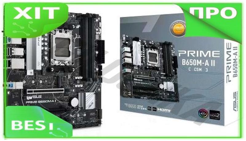 ## VE Материнська плата AM5 Asus New Version PRIME B650M-A II 4xDDR5 для ПК MicroATX з HDMI та USB 3.2 N6W_VER Материнські плати ASUS серії Prime майстерно розроблені для розкриття повного потенціалу процесорів AMD Ryzen 7000-ї серії. Завдяки надійній конструкції, комплексним рішенням для охолодження та інтелектуальним можливостям налаштування, PRIME B650M-A II надає користувачам і збирачам ПК цілий ряд можливостей для оптимізації продуктивності завдяки інтуїтивно зрозумілому програмному забезпеченню та вбудованому програмному забезпеченню. Підвищення продуктивності процесора. Технологія AMD Precision Boost Overdrive (PBO) розширює бюджет струму та напруги процесора для збільшення продуктивності. Агресивно налаштовуючи параметри PBO, алгоритм AMD може використовувати надійну систему живлення материнської плати для ще більшого підвищення продуктивності. Всебічна енергоефективність. Функція енергозбереження містить кілька налаштувань, які дозволяють легко оптимізувати енергоспоживання та максимізувати економію енергії. Ви можете ввімкнути обмеження потужності процесора, приглушити підсвічування Назва Од.Вим. Значення Тип пам'ятіDDR5 M.2 порт2 Форм-факторMicro ATX Порти USB 2.06 Bluetoothнемає Wi-Fiнемає Роз'єми SATA34 Кількість PCI-E x16 4.03 VGA1 DisplayPort1 HDMI1 Порти USB 3.26 DVIнемає Кількість слотів пам'яті4 СокетAM5 ЧипсетAMD B650 Інтегрований процесорнемає Не пропустіть вигоду! Кількість акційних товарів суворо обмежена! Попередження: на ринку працюють м'яко кажечи не сильно чесні люди, пропонуючи дешеву низькоякісну продукцію під виглядом справжнього товару!Будьте пильними. Ми гарантуємо вам придбання виключно добротного товару в Україні, який бездоганно виконує свої функції та приносить лише позитивні емоції від використання. Чому вигідно купувати саме у нас? Справжні відгуки та рекомендації від задоволених клієнтів Наш інтернет-магазин по праву гордиться великою кількістю позитивних відгуків від вдячних клієнтів. Ознайомтесь з їхніми думками та порадами прямо на цій сторінці або на нашому офіційному сайті, щоб остаточно переконатися у правильності вашого рішення. Максимальна відкритість і чесність у кожному аспекті Ми будуємо міцні відносини з покупцями на засадах порядності та відкритості, завжди готові до діалогу та пошуку компромісів. Всі ключові характеристики продукції, гарантійні зобов'язання та умови обміну детально представлені на нашому веб-сайті, що забезпечує повну довіру та взаєморозуміння. Проста та зручна процедура повернення без зайвих зусиль Ми прекрасно розуміємо, що іноді трапляється, що обраний товар з якихось причин не підійшов. Саме тому наша система повернення є максимально прозорою та клієнтоорієнтованою, щоб ви відчували себе захищено та спокійно після здійснення покупки. Обслуговування преміум-класу, підкріплене 10-річним досвідом Наші досвідчені фахівці завжди готові надати вичерпну консультацію та професійну допомогу у виборі оптимального товару. Ми цінуємо кожного покупця та докладаємо максимум зусиль, щоб процес вашої покупки був максимально комфортним та вигідним. Швидкісна доставка та гнучкі умови оплати на вибір Ми гарантуємо блискавичну доставку по всій території України, а також пропонуємо різноманітні варіанти оплати, включаючи безпечні онлайн-платежі та зручну оплату при отриманні. Оберіть той спосіб, який є найбільш зручним саме для вас. ✅ Абсолютно кож