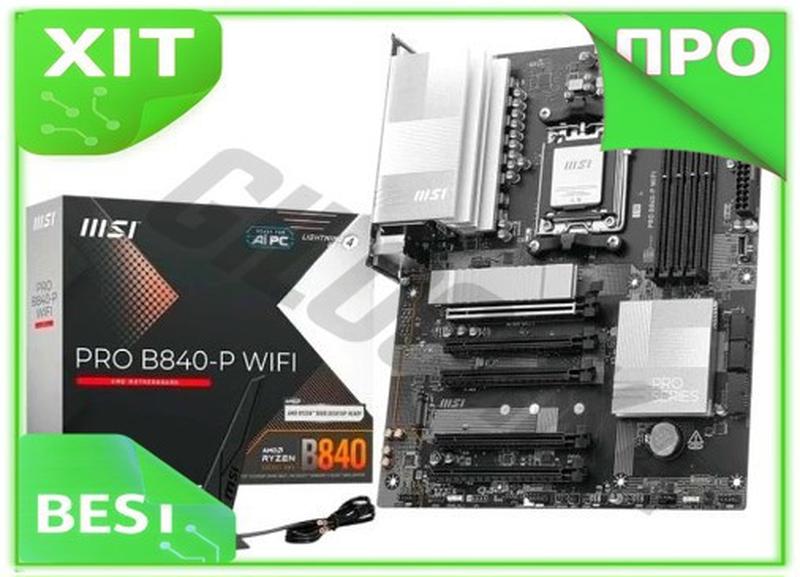 Ve материнська плата am5 msi new version pro b840-p wifi 4xddr5 для пк з wifi 7 та bluetoo...