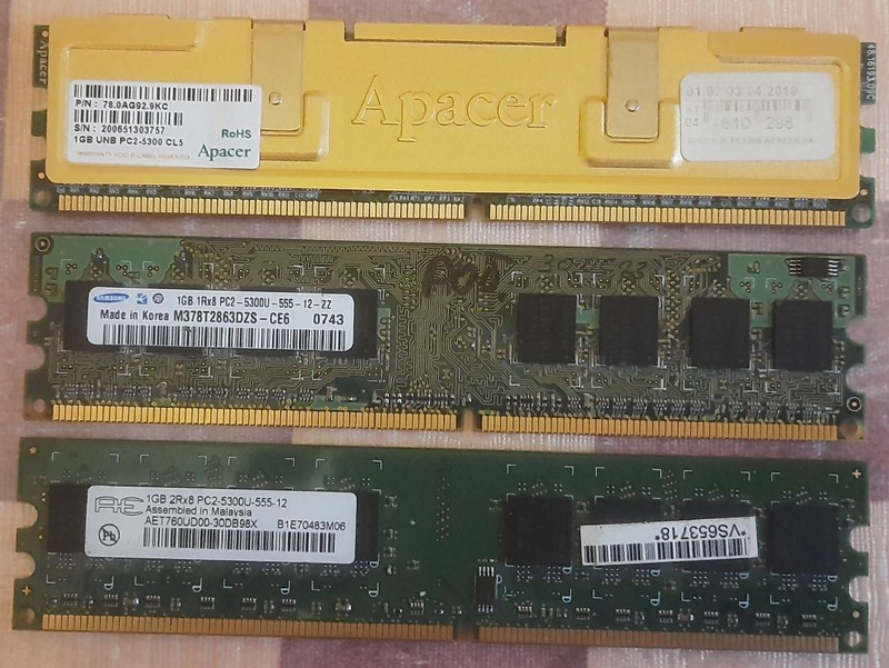 Оперативна пам’ять apacer, samsung, aeneon для пк 1 gb ddr2-667 pc-5300 intel/amd тест ок