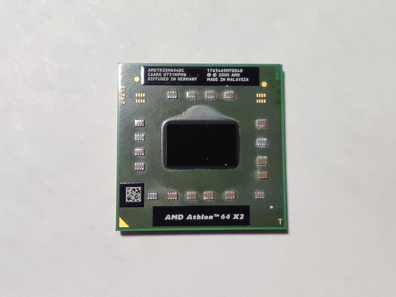 Процесор для ноутбуків AMD Athlon 64 X2, 1.8 Ghz, Socket S1 Двоядерний процесор для ноутбуків AMD Athlon 64 X2, 1.8 Ghz, Socket S1 двоядерний процесор атлон для ноутбуків Acer Aspire 5520, 5520G, 7520, 7520G, 4520, 4520-6A1G12Mi ; MSI M670X, M670X-060UA ; Acer TrevelMate 5520, 5520G, 5520G-6A1G08Mi, 4520,4520-6A1G12Mi ; Toshiba Satellite A210 ; Asus X50N, X50M та інших із Socket S1 Характеристики процесора TK-55: Виробник — AMD Модель — AMD ATHLON 64 X2 TK-55 Двоядерний — так Сокет - S1 ( 638 pin ) Частота кожного ядра — 1.8 GHz Споживана потужність — 31 W Кеш першого рівня — 128 KB Кеш другого рівня — 512 KB Швидкість шини — 800 MHz Підтримка команд 64-bit — так.