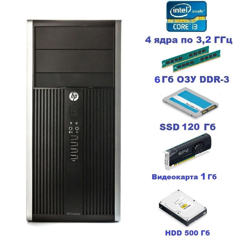Б/в, системний блок, комп'ютер, intel core i3 2120, 4 потока, озп 6 гб, hdd 500 гб, ssd 12...