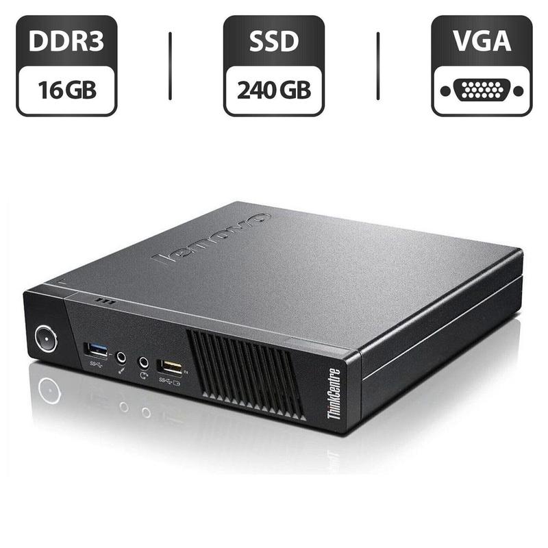 Характеристики Модель: Lenovo ThinkCentre M93p Tiny USFF Материнська плата: Intel Q87 Chipset Процесор: Intel Core i5-4570T (2 (4) ядра по 2.9 - 3.6 GHz), 4 MB Smart Cache Оперативна пам'ять: 16 GB DDR3 Постійна пам'ять: 240 GB SSD Графіка: інтегрована Intel HD Graphics 4600 (до 1792 MB з ОЗП) Порти: 3x USB 2.0, 2x USB 3.0, 1x VGA, 2x DisplayPort, 2x Audio, 1x LAN (RJ-45) Оптичний привід: немає Блок живлення: 65W Стан: б/в (клас А: хороший стан; без дефектів; можуть бути сліди звичайного використання) Особливості Встановлено SSD на 240 GB Блок живлення у комплекті