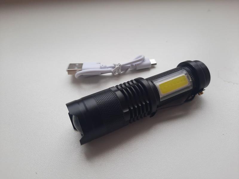 Особливості: Колір: чорний Матеріал: алюмінієвий сплав Розміри: 92 х 25 х 25 (мм) Потужність: 1-5 Вт Спосіб харчування: вбудована батарея 14500 Метод масштабування: телескопічний зум Водонепроникний Дальність освітлення лампи XPE: близько 100 метрів Дальність освітлення бокового світла COB: 25 квадратних метрів Ліхтарик має невеликий розмір і легку вагу. Його можна покласти в карман, рюкзак або сумку через плечо або навіть закріпити на цепочці для ключів. Це універсальний інструмент для нічних прогулок або інших видів активного відпочинку. Режим 1: Основне джерело світла Режим 2: Мигання sos Режим 3: Бокова підсвітка У комплект входять: 1 * ліхтарик 1 х USB-кабель