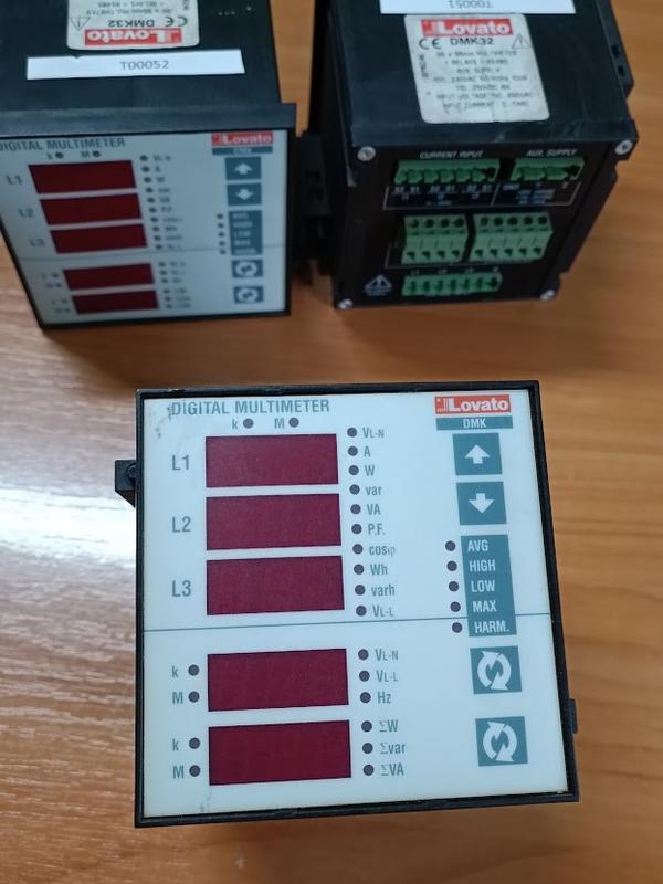 Несколько экземпляров в наличии Аналізатор параметрів мережі lovato (вимірювання 251 параметрів + RS485 ) DMK 32 - Б.В. Мультиметри DMK призначені для вимірювання параметрів 1,3 фазних мереж з нейтралью і без, з напругою 30...480 (фаза - нейтраль), 60...830 В (фаза - фаза). Даний прилад замінює амперметр, вольтметр, частотомір, вимірювач потужності (активної кВт, повної кВА, кВАр реактивної), вимірювач коефіцієнта потужності cos (FI). Переваги приладу: заміна в одному приладі 14 стандартних стрілочних приладів вимірювання параметрів мережі; можливість 1, 2, 3 фазного підключення з нейтраллю та без; вхідний фільтр перешкод для стабілізації значень, що переглядаються; TRMS вимірювання напруги та струму; збереження виміряних значень; контроль параметрів мережі; вбудований лічильник часу роботи; компактність 96 х 96 мм; енергонезалежна пам'ять виміряних максимальних та мінімальних значень. Мультиметр дозволяє вимірювати: напруга лінійна і фазна по всіх фазах; запам'ятовування максимального/мінімального значення вимірюваної напруги струм по всіх фазах; запам'ятовування максимального/мінімального значення вимірюваного струму напруга живлення потужність по всіх трьох фазах: активна кВт, повна кВА, реактивна кВАр запам'ятовування максимальна/мінімальна потужність за всіма трьома фазами: активна кВт, повна кВА, реактивна кВАр електроенергія активна кВт*рік, повна кВА*рік., реактивна кВАр*рік Производитель: Lovato