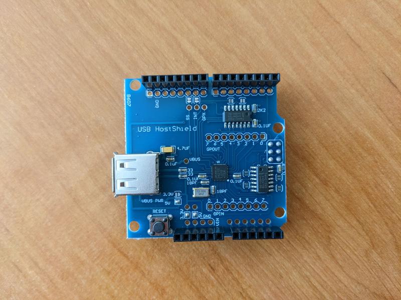 На плате спаяны 3 перемычки. USB Host Shield 2.0 построен на микросхеме MAX3421E содержит всю необходимую цифровую логику и схемы необходимые для подключения различных USB устройств версии 2.0 к Вашей плате Arduino. Этот шилд позволяет вашей плате Ардуино выступать как USB-хост устройство. Программное обеспечение напаписано большое количество библиотек и есть поддержка от Google ADK. На плате выведены 8 цифровых GPIO входов и 8 GPIO выходов, которые можно использовать для организации ввода/вывода (как небольшая компенсация за использованный SPI порт контроллера). Дополнительные служебные сигналы (INT, SS, GPX) так же удобно выведены и их легко и просто можно использовать при работе устройства.