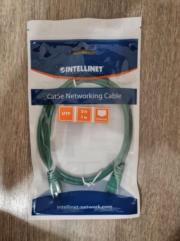 Тип: Патч-корд (мережевий кабель). Бренд: Intellinet Network Solutions. Категорія: Cat 5e (Category 5 Enhanced). Тип екранування: UTP (Unshielded Twisted Pair – неекранована вита пара). Довжина: 1 метр (3 фути). Швидкість передачі даних: Підтримує швидкість до 1 Гбіт/с (1000 Мбіт/с). Діапазон частот: До 100 МГц. Роз'єми: RJ-45 з обох кінців.