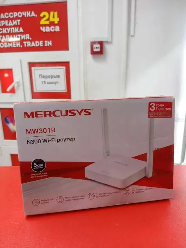 **Маршрутизатор Wi-Fi Mercusys MW301R — до 300 Мбіт/с** Продам Wi-Fi роутер **Mercusys MW301R** у відмінному стані. Підходить для дому або офісу — стабільний сигнал і проста настройка. 📡 **Характеристики:** • Швидкість Wi-Fi: до 300 Мбіт/с (2.4 ГГц) • Антени: 2 зовнішні по 5 дБ • Порти: 1 WAN + 2 LAN (10/100 Ethernet) • Підтримка: Dynamic IP, Static IP, PPPoE, PPTP, L2TP • Безпека: WPA-PSK / WPA2-PSK • Батьківський контроль, гостьова мережа • Просте налаштування через веб-інтерфейс або додаток Mercusys ⚙️ **Живлення:** 5 В 🌍 **Країна виробник:** Китай 📦 **Комплектація:** роутер, блок живлення, кабель RJ45, інструкція