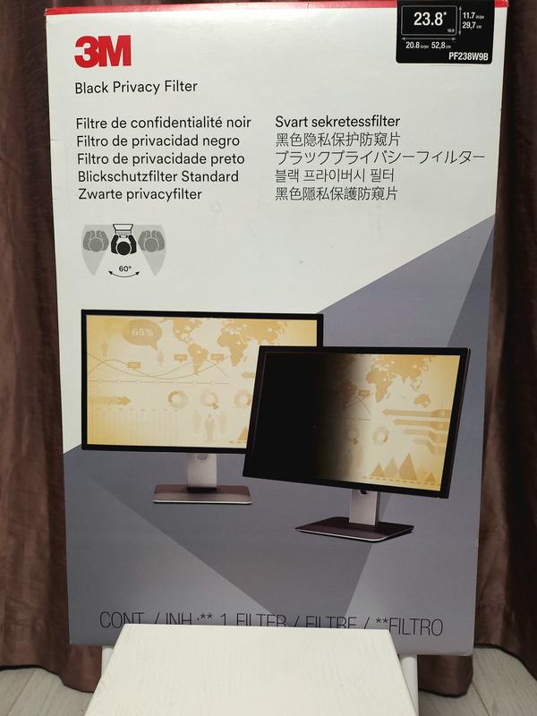 Чорний фільтр приватності 3M (Black Privacy Filter) призначений для моніторів із діагоналлю екрана 23,8 дюйма. Основні характеристики: Приватність: Використовує технологію мікрожалюзі, яка забезпечує ефективний "чорний екран" для перегляду збоку, за межами кута огляду 60 градусів. Дані на екрані видно лише особі, яка сидить безпосередньо перед монітором. Реверсивний дизайн: Фільтр можна використовувати будь-якою стороною: Матова сторона допомагає зменшити відблиски та приховати відбитки пальців. Глянцева сторона забезпечує підвищену чіткість зображення. Захист: Допомагає захистити крихкий РК-екран від пошкоджень, подряпин і пилу. Зменшення синього світла: Знижує передачу синього світла від дисплея на 35%. Сумісність: Розроблений для широкоекранних моніторів із плоским скляним дисплеєм і співвідношенням сторін 16:9. Цей продукт ідеально підходить для використання в місцях з інтенсивним рухом людей, де конфіденційність інформації на екрані є важливою. В комплекті клейка стрічка та інструкція. Товар з Європи. Новий. Сертифікований.