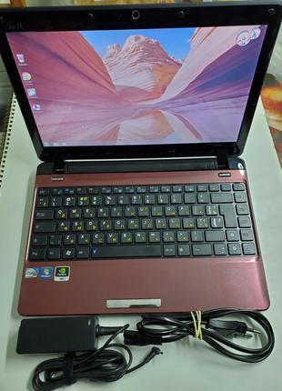 Виробник: Asus Тип пам'яті: DDR2 Об'єм оперативної пам'яті: Інше Тип ноутбука: Нетбуки Тип екрану: Глянцевий Ноутбук нетбук ASUS Eee PC 1201NL Red Seashell Екран 12.1 дюйма (1366x768), LED, глянсовий / Intel Atom N270 (1.6 ГГц) 2 потоки / RAM 3 ГБ DDR2 / HDD 250 ГБ / nVidia ION / LAN / Wi-Fi / веб-камера / Windows 7 / Вага 1.4 кг Якісний, компактний для неважких завдань. Привезений з Германії. В гарному стані без сколів без тріщин. Матриця без дефектів. Робочий, акб тримає заряд біля години в режимі відео. На клавіатурі не працюють дві клвіші Ч (англ. Х) та лівий Ctrl В комплекті блок живлення. Габарити (Ш х Г х В) 296 x 208 x 27.3 - 33.3 мм адаптери Wi-Fi 802.11b/g Ethernet Раз"єми та порти 3 порти USB 2.0 / VGA / HDMI / RJ-45 (LAN) / вихід на навушники / мікрофонный вхід / кард-рідер 3-в-1
