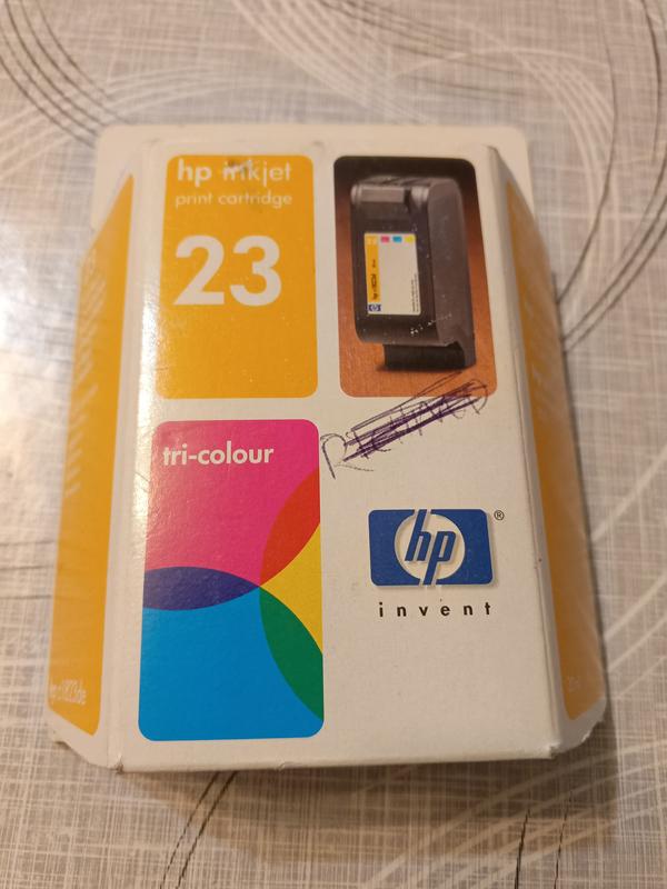 оригінальний триколірний картридж HP 23 (C1823D). Забезпечує високоякісний кольоровий текст, графіку та фотографії. Ресурс становить приблизно 620 сторінок. Містить чорнила трьох кольорів: блакитного, пурпурового та жовтого. Сумісний з різними моделями струменевих принтерів HP