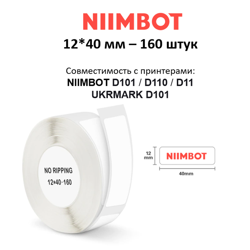 Етикетки niimbot 12*40 мм для термопринтера d101 d110 d11 ukrmark