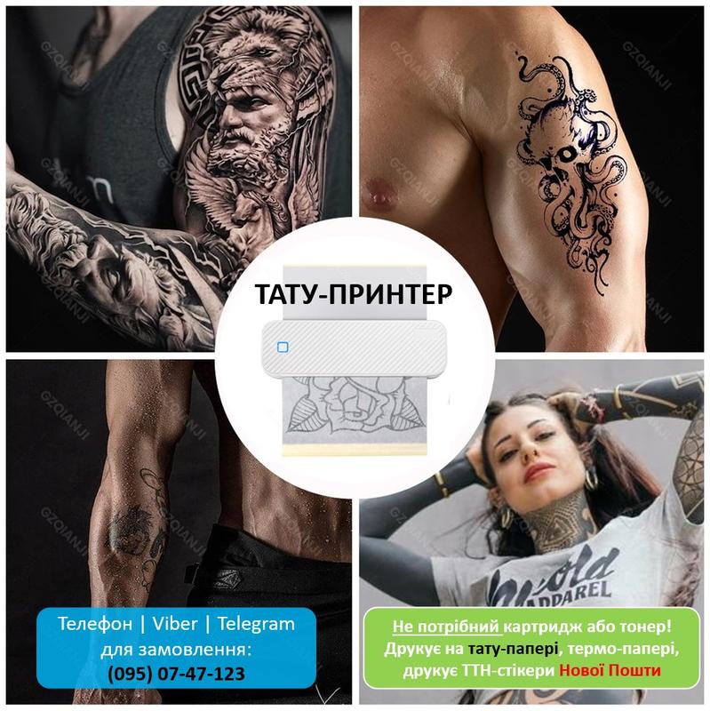 Новий, портативний бездротовий Bluetooth/USB трансферний тату-термопринтер формату А4 з вбудованим акумулятором + рулон білого термо-паперу формату А4 (еквівалент 25 аркушів А4). Принтер є повним аналогом-конкурентом принтера PeriPage A40 і нічим йому не поступається. Принтер призначений для друку на перевідному/трансферному папері для створення ескізів тату, на білому термопапері (в рулонах чи окремих аркушах формату А4), етикеточному/стікерному термопапері (можна друкувати стікери ТТН на посилки Нової Пошти). Принтер працює в Android/iOS/Windows/macOS. Для роботи в Android та iOS використовується фірмовий застосунок Luck Jingle (безкоштовно доступний у Google PlayMarket та Appstore). Для друку у Windows та macOS з сайту виробника завантажте драйвер. Принтер може працювати як по Bluetooth, так й по USB-кабелю (Android, iOS - по Bluetooth; Windows, macOS - по USB). Порт заряджання USB Type-C, 5V 2А - принтер може заряджатись зарядкою від смартфона, від powerbank, від ПК або навіть прикурювача в авто! Специфікація: Технологія друку: термодрук Роздільна здатність: 203 dpi Спосіб під'єднання: Bluetooth 4.0, USB Підтримка ОС: Android/iOS (по Bluetooth), Windows/macOS (по USB) Батарея: вбудована акумуляторна батарея Час безперервного друку: 1,5 години Вхід: 5В 2А Порт заряджання: USB Type-C Розмір: 265x80x45 мм Вага: 650 грам Колір корпусу: Білий Комплектація: - тату термопринтер - USB Type-C кабель - рулон термо-паперу формату А4 - інструкція - оригінальна коробка. Відправка поштою в день замовлення (Нова Пошта, Укрпошта, Meest, Rozetka), або самовивіз у Києві (пр-т Лобановського, ст. метро "Деміївська" / "Васильківська"). Також в наявності (дивіться на останньому фото в фотогалереї): 1. Тату папір формату А4 (трансферний папір A4, перевідний папір A4, папір для тату ескізів) для термопринтерів: - 4-компонентний аркуш TM "Spirit" формату А4 (21,6x27,9 см) - 25 грн/шт. - 10 шт. 4-компонентних аркушів TM "Spirit" формату А4 (21,6x27,9 см) - 199 грн. (19,90 грн/шт). - 50 шт. 4-компонентних аркушів TM "Spirit" формату А4 (21,6x27,9 см) - 750 грн. (15 грн/шт). - 100 шт. 4-компонентних аркушів TM "Spirit" формату А4 (21,6x27,9 см) - 1350 грн. (13,50 грн/шт). 2. Термопапір "PeriPage" рулонний формату А4. З гарантією збереження надрукованого зображення не менше 3-х років за звичайних умов, має захист від води та олії, з можливістю писати на папері кульковою ручкою. Довжина рулону еквівалентна 25 аркушам формату А4. Ціна - 250 грн./рулон. Упаковка з 2 рулонів - 450 грн. (225 грн./рулон). 3. Кейс-чохол для зберігання принтера та аксесуарів. Ціна - 550 грн.