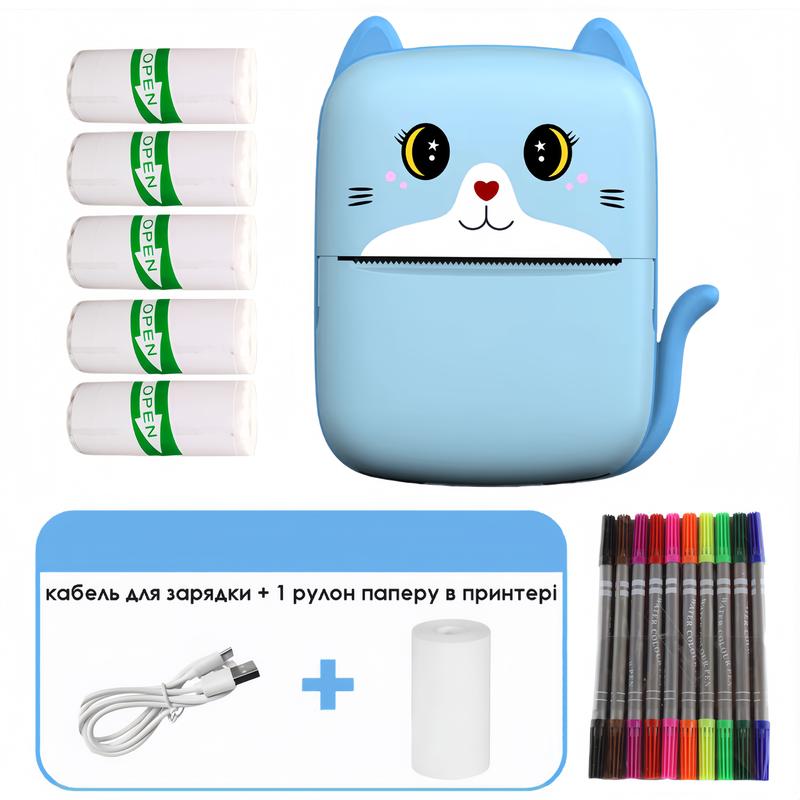 Термо принтер для дітей фотопринтер bluetooth ручної друкувати маленькі фотографії mini printer Неймовірний маленький принтер Mini Printer допоможе вашій дитині відчути себе зовсім дорослою, а також краще запам'ятати літери, цифри, нові слова, в ігровій формі. На ньому можна друкувати розмальовки, прописи, літери, цифри, улюблених персонажів, світлин і багато іншого, що зможе відвернути вашу дитину або допомогти в розвивальних заняттях. Для дорослих користувачів це незамінний помічник, який дасть записати, передати повідомлення, зняти знімок, скриншоти. На цьому принтері можна друкувати будь-яку текстову або графічну інформацію прямо з вашого смартфона через bluetooth-з'єднання. Завдяки своїм компактним розмірам, блютуз принтер завжди можна покласти в кишеню куртки або невелику сумку. Жодних дротів, вся робота з мобільним принтером відбувається за допомогою Bluetooth 4.0 і вашого смартфона. Не варто турбуватися, що в потрібний момент у кишеньковому принтері закінчиться чорнило, оскільки друк відбувається без його допомоги, а методом нагрівання термопаперу. Особливості пристрою: - Термодрук без використання фарби - Прямий друк зі смартфона через фірмову програму WalkPrint - Портативний і автономний мобільний принтер із вбудованим акумулятором 1000 мА*год - Швидке пряме з'єднання з вашим смартфоном через bluetooth канал через фірмовий застосунок. - Перегляд вмісту перед друком на екрані вашого телефона. - Збереження історії всієї надрукованої інформації. Технічні характеристики: - Тип: кишеньковий принтер, портативний bluetooth принтер - Тип друку: Термодрук. - Колір друку: Чорно-біла - Ширина друку: 53 мм - Витратні матеріали: рулонна термопапір. - Розмір паперу: ширина 57 мм. - Спосіб під'єднання: через Bluetooth. - Підтримувані смартфони: Android, IOS. - Живлення: вбудований акумулятор 1000 мА*год. - Розмір: 113x 80 x 38мм. Комплектація: - Портативний термопринтер - 1 шт - Рулонний термопапір білий - 1 шт (у принтері) - Рулонний термопапір білий самоклеючий - 5 шт - Двосторонні фломастери набір 10 шт - USB-кабель для заряджання - 1 шт - Інструкція