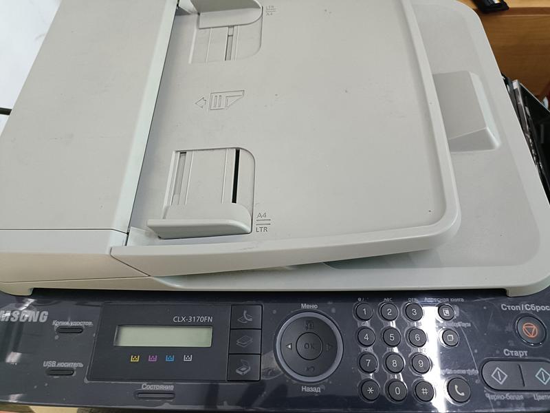 Багатофункціональний пристрій Samsung. З незручностей непродумано з лотком паперу, конструкція незрозуміла. Робочий, кольоровий принтер 2 в 1. В комплект катріджі що на фото та кабель живлення. Стан на фото.
