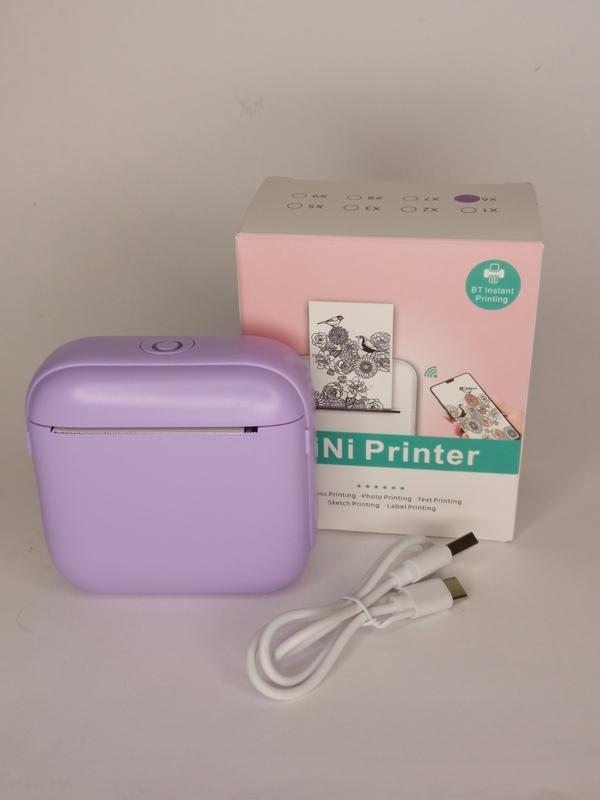 Мини-принтер Х6 Этот универсальный принтер поддерживает широкий набор функций, позволяющий печатать все: от фотографий, меток и сообщений до списков, записей и файлов. Компактный и простой дизайн: благодаря маленькой и легкой конструкции этот принтер легко поместится в вашей сумке, что делает его очень портативным. Он может похвастаться разрешением 200 точек на дюйм, что обеспечивает четкие и высококачественные отпечатки. Это идеальный инструмент для различных условий, включая обучение, работу, домашнее использование и путешествия. Это также идеальный подарок для студентов, офисных работников, любимых, друзей и членов семьи. Способ подключения: этот принтер поддерживает беспроводную связь, что позволяет легко подключаться к вашему смартфону. Чтобы воспользоваться ею, просто следуйте руководству пользователя, чтобы загрузить соответствующую программу (Tiny Print) с App Store (для систем IOS) или Google Play (для систем Android). Долгое время работы: оснащен встроенной аккумуляторной батареей на 1200 мАч, этот принтер работает тихо и эффективно. Поскольку в нем используется технология термопечати, нет необходимости в чернильных картриджах, что приводит к снижению эксплуатационных расходов. Характеристика: Модель: X6 Цвет: фиолетовый Размер: 80x80x40 мм Вес: около 150 г Разрешение печати: 200 точек на дюйм Метод печати: Термический / без чернил Метод печати изображения: черно-белый Bluetooth: 4.0 Размер бумаги: 57x25 мм Аккумулятор: 1200 мАч Размер упаковки: 10,7x9x5,5 см