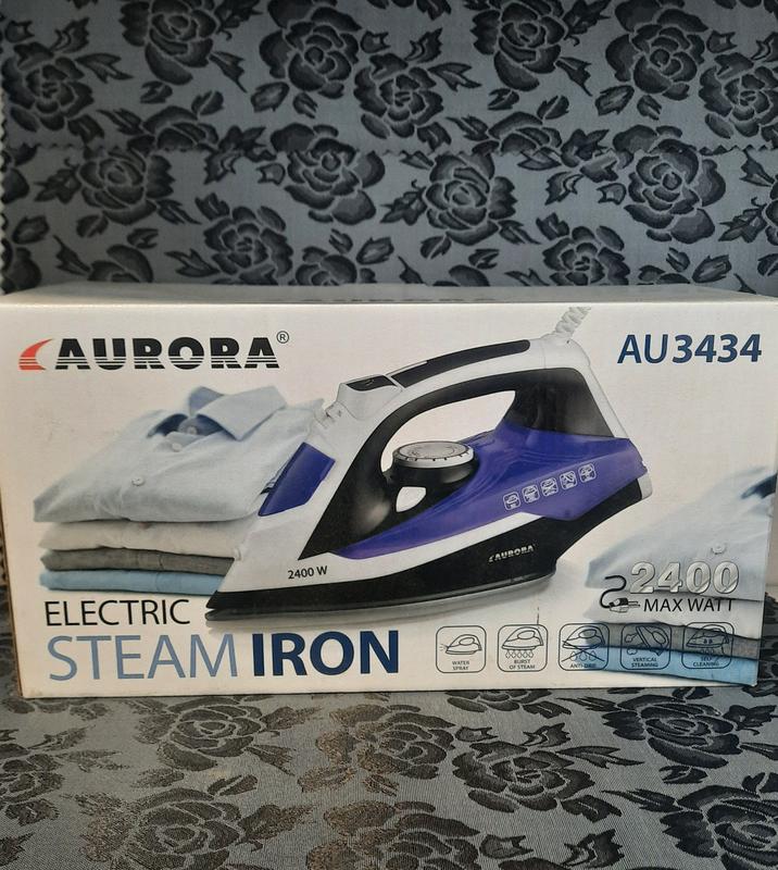 Праска AURORA максимальна потужність:2400вт.Керамічна подошва.Вкртікальне підпарювання.Самоочіщення від накіпу.Паровий удар.