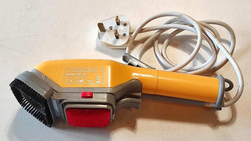 Ручной отпариватель высокого давления для одежды. Фабричный Китай, 90-е годы прошлого века. Может использоваться как с функцией пара, так и как обычная щетка двух типов. Функция пара подается ударно, что позволяет экономно использовать жидкость, можно пользоваться вместе с щеткой или только пар без щетки, с вертикальным отпариванием. Работает от сети 230 Вольт, мощность 700вт, частота 50герц, 85мл воды. Нагревается быстро, 50 секунд. Оснащен автоматическим отключением и защитой от перегрева. Сопло не бросает водой. Профессиональный дизайн нагревательного элемента обеспечивает высокую эффективность и низкое потребление. Длина сетевого провода 1,7м. Имеет петлю для подвешивания. Привезён из Англии, евро -вилка. В отличном рабочем состоянии.