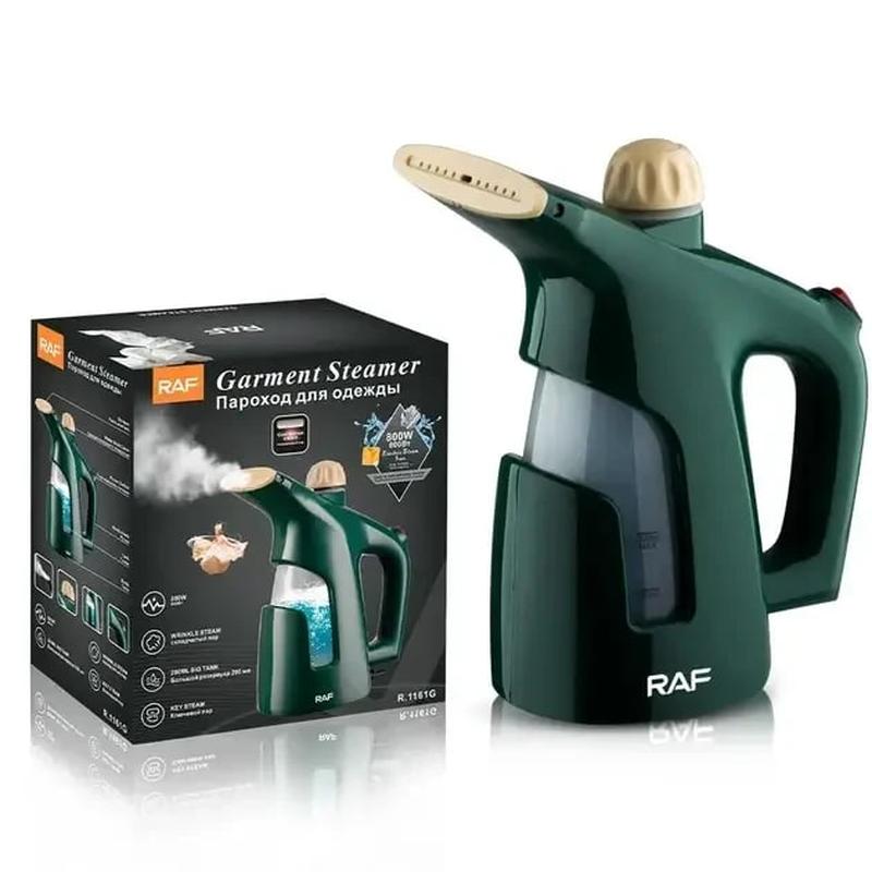 Ручной вертикальный отпариватель для одежды с мерной чашей для воды на 800 Вт RAF R.1161 Зеленый Ручной отпариватель RAF R.1161 электрический может легко удалить складки с одежды, он незаменим для придания «выглаженного», свежего вида изделиям из льна, вельвета, ворсовых и других тканей. Под действием пара волокна тканей не растягиваются и не сжимаются, как под воздействием утюга, а приобретают объемность, эластичность и первоначальный блеск. Отпариватель никогда не оставит заломов и липких пятен на изделиях из шерсти, трикотажа, синтетических волокон. С ним не нужно использовать гладильную доску или стол, а можно отпаривать, не снимая вещи с вешалки. Отпариватель удаляет неприятные запахи с одежды, устраняет пятна пота, мятости. Дома, на даче, а также в детских заведениях отпаривателем можно дезинфицировать мягкие игрушки, постельное белье. Пар избавляет изделия от пылевых клещей, убивает микробы и патогенную микрофлору. Отпариватель значительно облегчит жизнь и сэкономит время деловому человеку. В офисе и дома отпариватель очень быстро придаст висящему на «плечиках» костюм презентабельный вид, устранит запах табака. Современный дизайн, компактный размер и малый вес позволяют без труда убрать отпариватель после использования в шкафу, чемодан, ящике стола. Собираясь в поездку, любая женщина и современный деловой мужчина кладут в свой чемодан дорожный утюг (хотя разложить вещи для глажки очень часто бывает нигде), мини-чайник или кипятильник + емкость для воды. В большинстве случаев размеры и вес нашего багажа нестабильны с нашими физическими возможностями. Отпариватель сэкономит Ваши силы и место в Вашем чемодане. Отпариватель легко разбирается, его можно быстро вымыть и очистить от накипи нагревательный элемент. Пользоваться отпаривателем чрезвычайно просто — достаточно просто налить в резервуар воду, включить кнопку электропитания и после 2 минут нагрева воды можно использовать пар по назначению. Имея резервуар для воды такого же объема, как и утюг, и нагревая воду в течение такого же времени, отпариватель в отличие от утюга подает пар непрерывно, что обеспечивает лучшее проникновение пара в ткань. Кроме того, вес отпаривателя в два раза меньше веса утюга, так что работать, не утомляясь, на вытянутой руке с отпаривателем можно намного дольше. Характеристики: Материал подошвы: Керамический Длина шнура: 1.8 м Мощность: 800 Вт Напруга: 220 В Емкость: 200 мл Материал: ABS пластик + Подошва с антипригарным покрытием Размер блока: 20*11*22 см Вес: 600 г