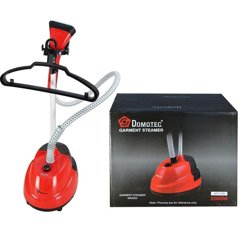 Вертикальний відпарювач Domotec MS-5353 2000W допоможе впоратися з найвибагливішими тканинами, розгладити складки на одязі та шторах, очистити меблі, водночас не докладаючи великих зусиль. Дає змогу прасувати одяг прямо на вішалці, а штори, не знімаючи з вікна. З відпарювачем можна чистити меблі та килими, чохли в автомобільному салоні, не знімаючи їх із сидінь. Парова праска підходить для всіх типів тканин, навіть найделікатніших, Адже під час роботи вода під дією високої температури 98 градусів перетворюється на пару та подається в текстильний виріб, тканина не стикається з відпарювачем на пряму. Якщо в будинку є хатні тварини, то відпарювач подбає про те, , щоб на меблях не було вовни, для цього є спеціальна щітка, яка прибирає ворсинки, волоски та пил. Пластикова поверхня праски виготовлена з неіржавкої сталі із системою Антикрапля, яка не допускає появу потоків і розводів на тканині. Відпарювач має два режими роботи, які можна регулювати панеллю керування на корпусі пристрою. Пара подається швидко й без перебоїв. Вертикальна праска за компактних габаритів і невеликої ваги має довгий шланг, що спрощує процес переміщення та використання пристрою. У приладі є індикатор очищення. Технічні характеристики: Потужність: 2000 Вт; Об'єм бака для рідини: 1,6 л; Час нагрівання води: 0.35 хв; Максимальна температура пари: 98 градусів; Продуктивність пари: 32 г/хв; Матеріал: пластик, неіржавка сталь; Колір: червоний.