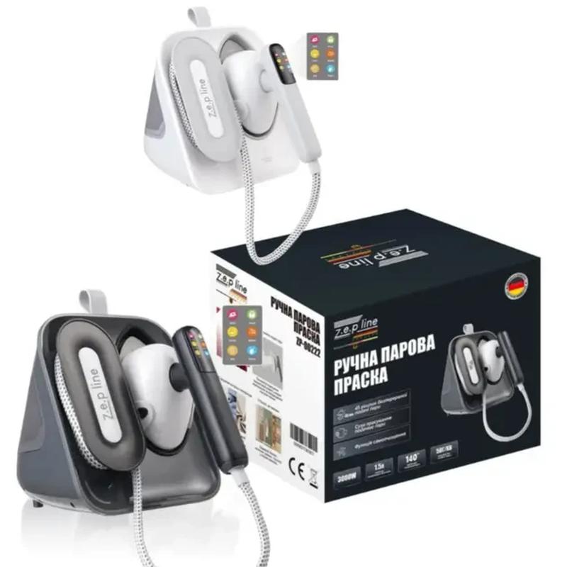 Ручна парова праска 3000Вт Zepline ZP-00222 Ручна праска Праска Zepline - потужний і зручний прилад для швидкого розгладження одягу. Завдяки вертикальному та горизонтальному відпарюванню легко справляється з будь-якими складками на різних типах тканин. Ідеальний варіант для дому та подорожей. Характеристики: Тип: праска ручна Вид: паровий Тип живлення: від мережі Тип управління: сенсорне Матеріал корпусу: пластик Потужність: 3000 Вт Місткість для резервуару: 1.5 л Подача пари: до 50 г/хв. Робоча температура: 140 градусів Час безперервної подачі пари: 45 хвилин