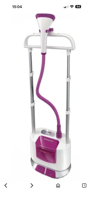 Відпарювач, парова праска PHILIPS GC670( без оригінальної коробки) Насадки: • щітка для тканини • для делікатних тканин • для загладжування стрілок Розмір: 38,6x79,2x23 см см Час нагріву 30 сек Довжина мережевого шнура 2м Система самоочищення.