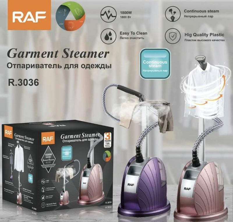 Вертикальний відпарювач RAF R.3036 з функцією дезінфекції Відпарювач для одягу RAF R.3036 — це потужний, простий і зручний в експлуатації прилад, який легко впорається з прасуванням одягу з будь-яких видів тканини, розгладженням штор і постільної білизни, допоможе видалити неприємний запах із речей, провести чищення м'яких меблів і килимів. Особливо корисним відпарювач буде для сімей, де є діти, адже з його допомогою можна з легкістю продезінфікувати іграшки. Працює прилад за тим самим принципом, що й хімчистка, що дасть змогу істотно заощадити сімейний бюджет. Відчуйте легкість сучасного життя разом із відпарювачем RAF R.3036. Основне: - Вплив пари на тканину є щаднішим, як порівняти з традиційним праскою, адже тут немає тиску на тканину розпеченою поверхнею, і речі слугуватимуть вам довше; - Можна прибирати одяг, не знімаючи його з вішака, немає потреби діставати та розкладати прасувальну дошку; - На відміну від праски, відпарювачем не можна зіпсувати річ, залишити пригорілу пляму, зробити непотрібну залом або деформувати структуру тканини; - не заподіюючи шкоди декоративним деталям, можна відпарювати одяг із рюшами, стразами, наклейками, вишивкою, бісером, склярусом і таким прикрасою. - Компактно складається для зберігання - Насадка-щітка — ідеально підходить для делікатних матеріалів Характеристики: - Конструкція: підлоговий - Об'єм бака для води, л: 2.3 - Потужність, Вт: 2000 - Час безперервної роботи: 75 хв. - Температура пари на виході, °C: 95+5 - Кількість режимів роботи: 9 - Живлення: 220-240 В - Матеріал корпусу: пластик - 12 режимів відпарювання - Готовність до роботи за 45 секунд - Телескопічна стійка - Вішак для одягу - Універсальна щітка для відпарювання. - Розмір паковання, см: 41х34х34 - Вага в упаковці, кг: 3,9