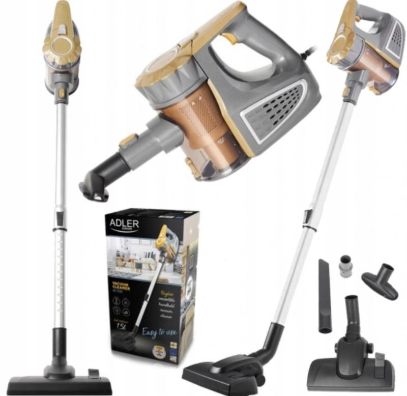 Вертикальний ручний пилосос 2в1 Adler 7036 Швидше отримати відповідь на Ваші запитання Ви можете по Viber ********** , WhatsApp ********** Опис продукту Прибираю із задоволенням * * * Зустрічайте пилосос Adler AD7036 - пилосос без мішка, який дозволяє ефективно видаляти пил і бруд з різних поверхонь. Він має двигун потужністю 800 Вт , який забезпечує високу продуктивність пилососу. Перевагою пилососа є відсутність мішка, а це означає, що його не потрібно регулярно міняти, що означає менші витрати на експлуатацію пристрою. Пилосос має контейнер для пилу об'ємом 1,5 л, який легко спустошується. Регулюючи потужність всмоктування, ви можете легко налаштувати потужність для очищених поверхонь. * * * Швидке та ефективне очищення Пилосос Adler AD7036 характеризується дуже високою потужністю всмоктування, завдяки чому він ефективно видаляє бруд з будь-якої поверхні . Це надзвичайно корисний пристрій у кожному домі, особливо для алергіків та власників домашніх тварин. * * * Більше свободи під час прибирання Пристрій має 7-метровий кабель , тому ви можете зручно пропилососити будинок або офіс, не шукаючи розеток. * * * Легке очищення без додаткових витрат Нове рішення, яким є система без мішків, дозволяє збирати забруднювачі без необхідності використання одноразових пакетів. Завдяки цьому користувач може заощадити як час, так і гроші, адже немає додаткових покупок. * * * Комфортне використання Великий контейнер для пилу об'ємом 1,5 л дозволяє зручно чистити , не спорожняючи його часто. * * * Змінні щітки та наконечники Пилосос Adler AD7036 поставляється з безліччю аксесуарів, які дозволяють легко прибирати різні поверхні. Щітка для підлоги > - використовується для очищення твердих поверхонь, таких як дерево, керамічна плитка або підлогові панелі; Щітка для оббивки - призначена для видалення пилу і бруду з м'яких меблів, килимів і накладок; Вузький наконечник - ідеально підходить для пилососу у важкодоступних місцях, таких як шафи, кути або плінтуса; Насадка для щілин - використовується для очищення вузьких щілин і щілин, наприклад, між диванними подушками, за радіаторами опалення або вздовж плінтусів; Телескопічна труба - легке регулювання під зріст людини, яка прибирає. * * * Що ви знайдете в упаковці? Технічні дані Основна інформація Ємність контейнера/мішка [л]: 1.5 Рівень шуму [дБ]: 79.9 Вага [кг]: 2.63 Потужність: мережі Тип фільтра: Витяжна, миється функції: Знімний ручний пилосос, телескопічна трубка технічний Пилососити Фільтри Обладнання параметри Рівень шуму [дБ]: 79.9 Довжина кабелю [м]: 5.5 Робочий діапазон [м]: 6.2 Електрична щітка: НІ турбощітка: НІ Потужність: мережі Вага [кг]: 2.63 Замінний акумулятор: НІ Кисть з підсвічуванням: НІ телескопічна труба: Так Зарядна/док-станція: НІ Дисплей: НІ Автоматичне спорожнення бункера: НІ Додаткові можливості: Гігієнічне спорожнення контейнера, конструкція 2 в 1 Знімний ручний пилосос: Так Ємність контейнера/мішка [л]: 1.5 Мокра робота: НІ Регулювання потужності всмоктування: НІ Збір пилу: Контейнер УФ-технологія: НІ Для алергіків: НІ Для власників домашніх тварин: НІ Кількість рівнів потужності всмоктування: 1 Тип фільтра: Витяжна, миється система фільтрації: 2-х етапний Модель фільтра: AD 7036.1 Насадки/щітки: Насадка для паркету, насадка для щілин, щітка для килимів і підлоги Інше обладнання: телескопічна труба Документація включена: Інструкція польською мовою, гара