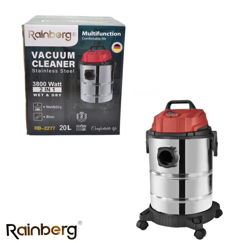 Rainberg RB-2277 — універсальний пилосос, який призначений для прибирання в будинках, квартирах, офісах, готелях, кінотеатрах, торгових залах, медичних та освітніх установах, на промислових виробництвах і майстернях. Крім сухого прибирання, він також використовується для збирання води та бруду. Має потужний двигун із мідною обвиткою та низьким рівнем шуму. Пилосос Rainberg має повітряний HEPA-фільтр — збірник пилу та сміття, що дасть змогу заощаджувати, не купуючи дорогих паперових мішків. У корпусі циклонічного пилососа замість мішка-пилозбірника використовується контейнер. Через те, що немає мішка з пилом, такі пилососи майже не втрачають потужність всмоктування, навіть якщо контейнер наповнений сміттям. Маневрений пилосос допоможе за короткий час ідеально прибрати приміщення. У пилососі використовується контейнер і фільтр тонкого очищення, завдяки чому повітря в приміщенні буде чистим. Пилосос обладнаний баком із неіржавкої сталі та ударостійкою підставкою на колесах. Характеристики: Потужність: 3800 Вт; Колба з неіржавкої сталі Потужний двигун із мідною обвиткою Об’єм бака: 20 л; Тип прибирання: сухе та вологе. Функція видування Живлення: Від мережі; Тип труби всмоктування: Телескопічна; Живлення 220 В/50 Гц; Ідеально підходить для важкодоступних місць. Підходить для великих площ прибирання
